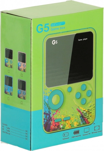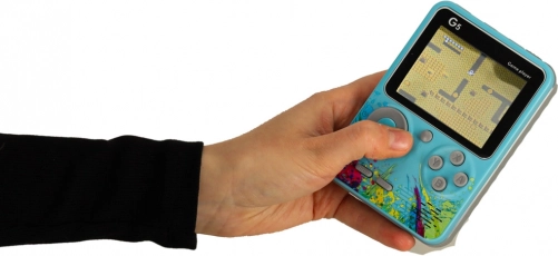Spaß für unterwegs und zu Hause: tragbare Retro-Mini-Spielkonsole mit 500 vorinstallierten Spielen, 3″-LCD-Display und wiederaufladbarem 3,7 V 1200 mAh Akku. Dank 3,5-mm-Kopfhörerbuchse und Lautstärkeregelung genießen Sie das Spielen überall; das leichte Kunststoffgehäuse ist ideal für Kinder ab 6 Jahren.