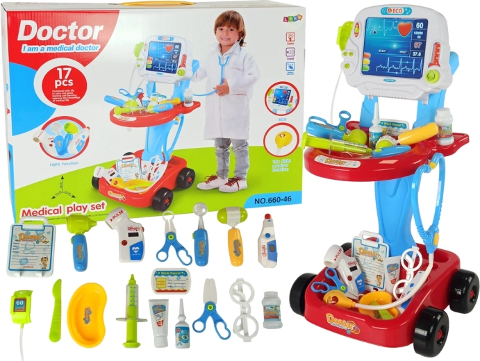 Ärztlicher Wagen mit Tisch und EKG, 17-teiliges Kinderset
