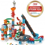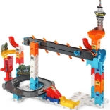 Lange Abfahrten, Spiralen und Schleifen sorgen für Spannung und Wettkampfatmosphäre. Verfolgen Sie die rasenden Murmeln und veranstalten Sie ein Familienturnier.