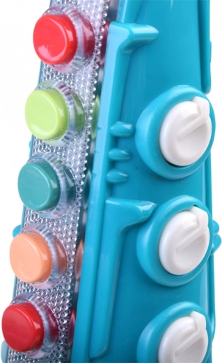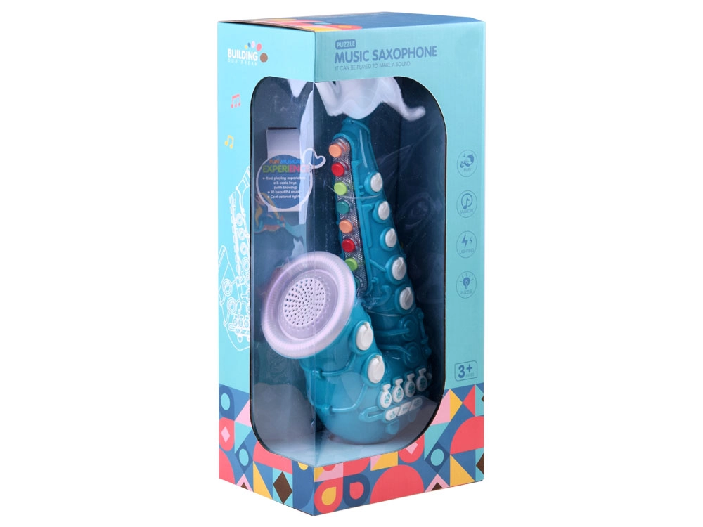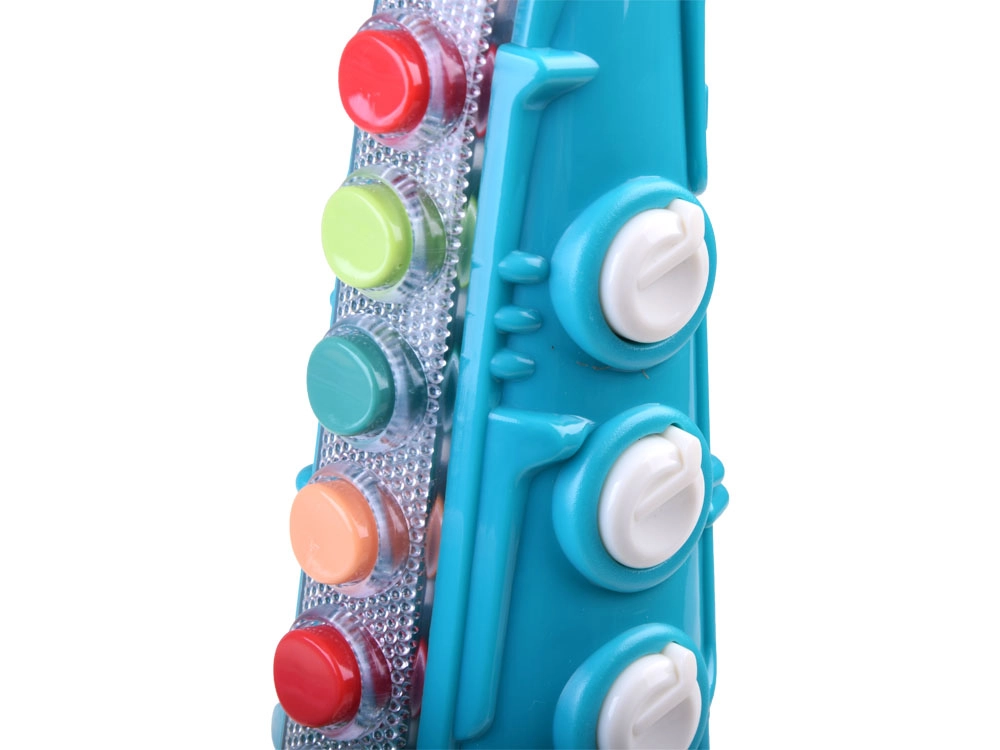 Dieses farbenfrohe Kindersaxofon fördert Rhythmusgefühl, musikalische Wahrnehmung und Motorik. Nach dem Einschalten begrüßt eine fröhliche Melodie, und beleuchtete Elemente gehen an. Kinder können fertige Stücke hören oder eigene Melodien spielen – durch Blasen in das Mundstück und Drücken der Tasten wie bei einem echten Instrument.