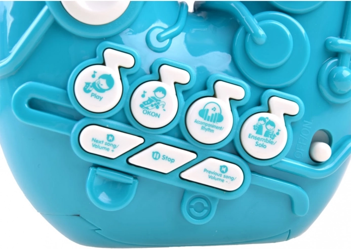 Farbige Lichteffekte, 3 rhythmische Begleitungen und ein verstellbarer Nackenriemen halten Aufmerksamkeit und Komfort der kleinen Musiker hoch.