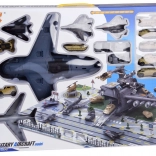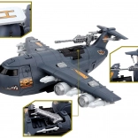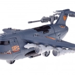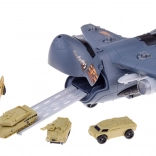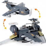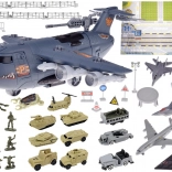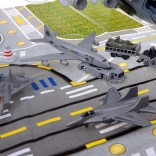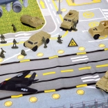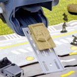 Großer Militärflugplatz mit Flugzeugen ist für Fans von Flugzeugspielen, der mit Sicherheit stundenlangen strategischen Spielspaß bietet. Das Set wurde fachkundig mit Liebe zum Detail gefertigt und enthält feine militärische Details, die für kleine Strategen, Fahrer und Piloten der Armee gedacht sind. Das große Militärflugzeug verfügt über zahlreiche Funktionen, die kleinen Piloten stundenlange Unterhaltung bieten. Das Flugzeug hat ein zu öffnendes Cockpit, eine ausziehbare Rampe, ein zu öffnendes Heck zum Gepäckraum, in dem zusätzlicher Stauraum vorhanden ist. Dieses fliegende Militärfahrzeug ist mit einer großen Anzahl an Gewehren und Raketen ausgestattet. Nach dem Öffnen der Luke im oberen Teil des Flugzeugs lässt sich das Geschütz ausfahren. Auch in den Flügeln des Flugzeugs sind Waffen verborgen, die in den oberen Teil eingesetzt werden können. Das Set wurde mit einer Unterlage ausgestattet, auf der sich zahlreiche Fahrstreifen befinden und die als Start- und Landebahn für Militärfahrzeuge dient – sie wird jedes Kind, das militärische Spiele liebt, für viele Stunden beschäftigen.