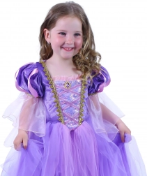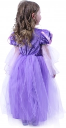 Ein bezauberndes Kostüm für kleine Prinzessinnen in Violett‑Rosa mit goldenem Besatz und einem voluminösen Tüllrock. Die Größe M (6–8 Jahre, 117–128 cm) sorgt für angenehmen Tragekomfort beim Karneval, Kostümball und beim täglichen Prinzessinnenspielen.