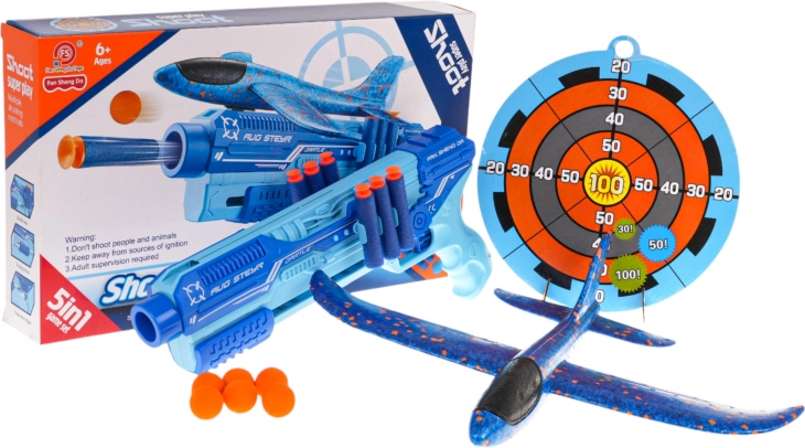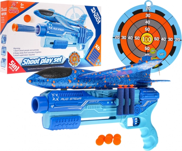 Schieß-Set 5-in-1 mit Flugzeugwerfer – blau