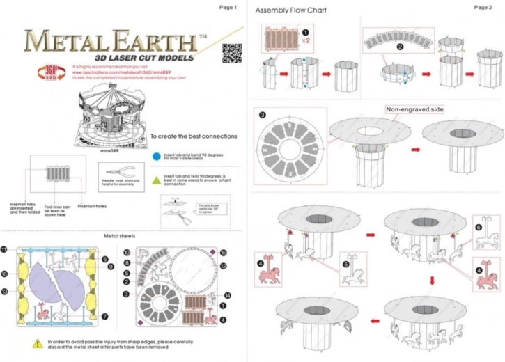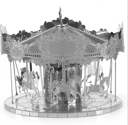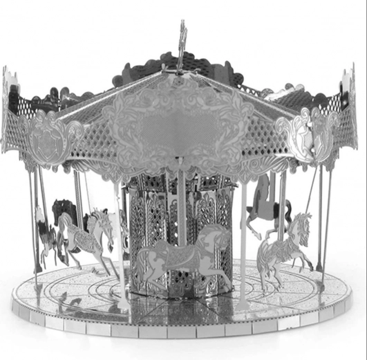 Entdecken Sie den Zauber klassischer Jahrmärkte im Miniaturformat. Das Karussellmodell aus der METAL EARTH Reihe ist präzise aus Stahlblechen gefertigt und mit feiner Lasergravur versehen, die realistische Details an Pferdchen, Dach und Zierpaneelen erzeugt. Der Zusammenbau erfordert Geduld und geschickte Hände, belohnt wird man jedoch mit einer markanten Design-Dekoration, die im Regal ebenso wie auf dem Schreibtisch auffällt.