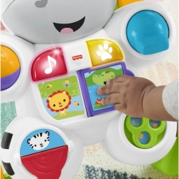 Interaktive Elemente umfassen eine drehbare Buchseite und leuchtende Tasten, die die Sinne stimulieren und langanhaltenden Spielspaß bieten. Darüber hinaus gibt es viele Aktivitäten wie Wippeffekte, Lacher- und Musikgeräusche, die das Kind zu Bewegung und spontanen Reaktionen motivieren.
