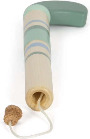 Diese hochwertig verarbeitete Korkenpistole aus Holz verbindet natürliche Optik mit sanften Farben und lädt zum aktiven Spiel drinnen wie draußen ein. Dank des befestigten Korkgeschosses an der Schnur geht nichts verloren, und Kinder können Genauigkeit und Reaktionsvermögen immer wieder trainieren.