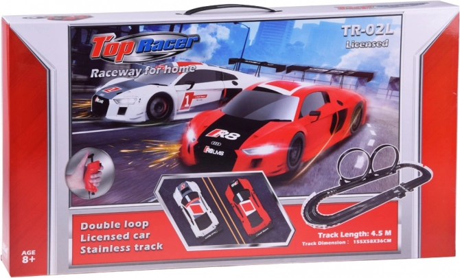 Diese elektrische Slotbahn bietet dynamischen Spaß für kleine und große Rennfahrer. Zwei präzise gefertigte AUDI-Autos rasen über eine Strecke mit doppelten Loopings, scharfen Kurven und Geraden. Dank Netzbetrieb brauchen Sie sich nicht um Batterien zu kümmern und das Rennen kann jederzeit starten.