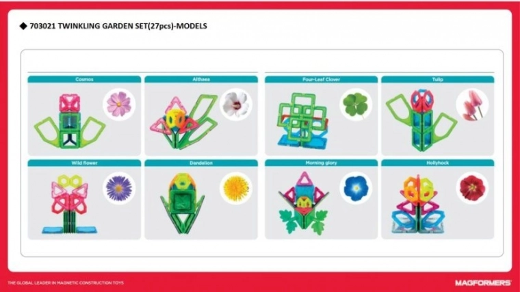 Mit Magformers Funkelnder Garten entwickeln Sie die Fähigkeiten der Kinder auf das Maximum. Formen fördern kreatives und logisches Denken.
