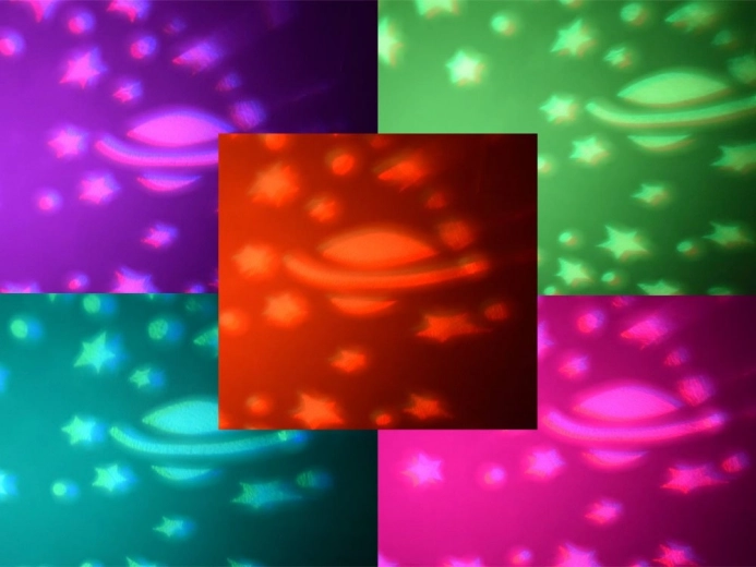 Das Licht projiziert bunte Bilder von Sternen und Monden an die Zimmerdecke und Wände und schafft eine beruhigende Schlafumgebung.