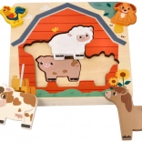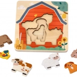 Entdecken Sie den Zauber des Bauernhofs mit dem Lagenpuzzle aus Holz – ideal für kleine Entdecker ab 18 Monaten. Kinder setzen die einzelnen Tiere in die passenden Formen, trainieren logisches Denken und üben die Auge–Hand-Koordination. Dank klarer Konturen und kräftiger Farben lässt sich das Puzzle leicht handhaben und das Lernen wird ganz natürlich spielerisch.
