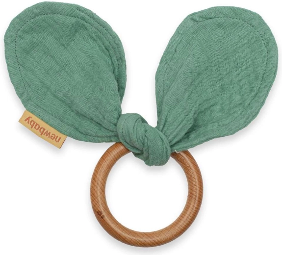 Der Beißring New Baby Ears in mint kombiniert 100% Bio-Baumwolle und Buchenholz, was Sicherheit und natürliche Materialien für Ihr Kind garantiert.