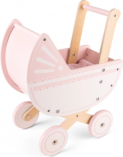 Genießen Sie lange Spaziergänge mit der Lieblingspuppe dank diesem charmanten Holzpuppewagen. Kinder können Mama oder Papa nachahmen und soziale Fähigkeiten entwickeln und die Welt verstehen, die sie umgibt.