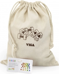 Das Set ist mit einer praktischen Baumwolltasche ausgestattet, die die Aufbewahrung und den Transport aller Teile erleichtert. Die Tasche ist so gestaltet, dass sie leicht zu pflegen ist und Kinder nach dem Spielen alle Teile selbstständig einpacken können.