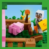 Erlebe den Spaß der beliebten Spielwelt live mit einem detailreichen Modell im Wald-Biom. Kinder können das erwachsene Schwein satteln, es mit einer Möhre am Stock anlocken und rund um das Schweinehaus reiten. Innen wartet ein gemütlicher Bereich mit Bett, Bücherregal und Werkbank, draußen ein Gehege und ein Beet mit Kartoffeln und Rüben.