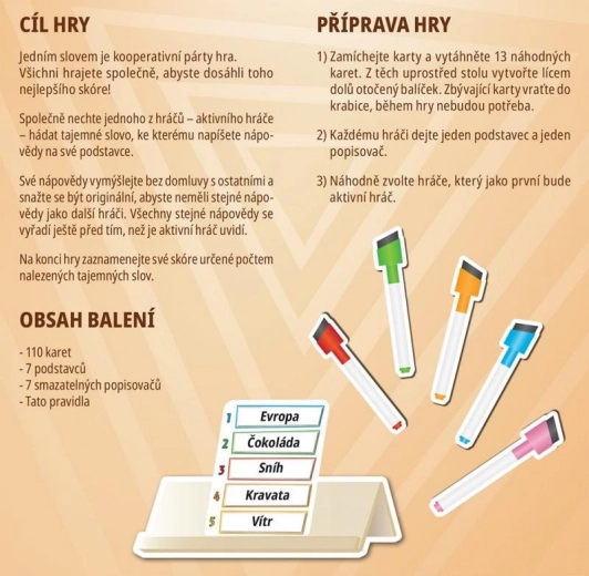 Mit einem Wort ist ein mitreißendes kooperatives Partyspiel, das jedes Treffen in Schwung bringt. Eure Aufgabe ist es, dem aktiven Spieler zu helfen, das geheime Wort mithilfe von Ein-Wort-Hinweisen zu erraten. Klingt einfach, doch der Haken ist, dass alle identischen Hinweise im Voraus entfernt werden – daher gewinnen originelles Denken und cleveres Zusammenspiel.