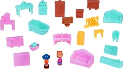 Das mehrstöckige Innere ist reich ausgestattet: Im Erdgeschoss finden Sie ein Schlafzimmer mit bequemem Bett und aufklappbarem Kleiderschrank, zudem fehlen Sofa, TV und Kommode nicht; im Obergeschoss gibt es ein Badezimmer mit Badewanne, Waschbecken und Waschmaschine; die nächste Ebene bietet eine Küche mit Kühlschrank sowie ein Zimmer mit Schminktisch. Im Garten warten Karussell und Schaukel für noch mehr Spaß.