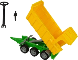 Entdecken Sie ein realistisches Set für kleine Landwirte: Kindertraktor mit kippbarem Anhänger mit einer Gesamtlänge von 50 cm. Das Spielzeug aus hochwertigen, zertifizierten Materialien bietet eine robuste Ausführung, eine kippbare Mulde mit öffnender Heckklappe und einen leicht zu steuernden Traktor für kreativen Spielspaß. Geeignet für Kinder ab 3 Jahren, mit CE-Zertifizierung.