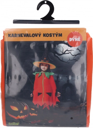Niedliches und leicht anzuziehendes Kürbis-Karnevalskostüm für Kinder mit einer Körpergröße von 110–120 cm. Enthalten sind Umhang und Hut – ideal für Karneval, Halloween und Kinderpartys.
