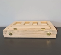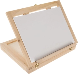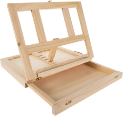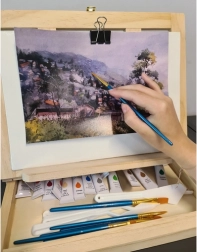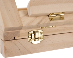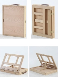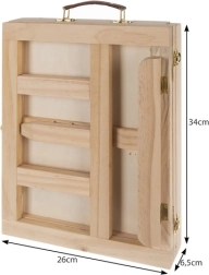 Der Holzkoffer ist mit einer Schublade und einer Staffelei ausgestattet, was einen einfachen Transport und eine gute Organisation der Künstlerutensilien gewährleistet.