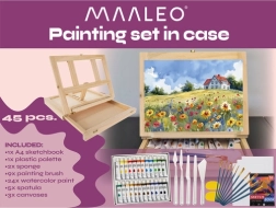 Praktisches Künstler-Malset der Marke MAALEO für Anfänger und erfahrene Maler. Enthält alles Nötige zum Malen und Organisieren Ihrer Kunstmaterialien in einem eleganten Holzkoffer mit Staffelei.