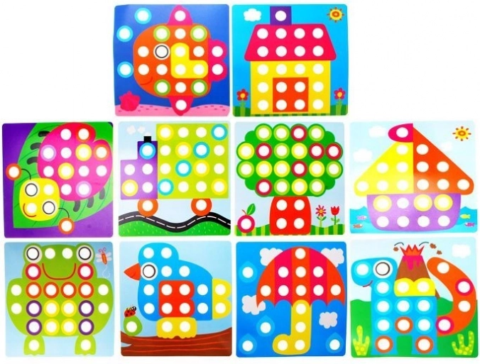 Das kreative Mosaik mit Stiften ist eine großartige Wahl für neugierige Kinder. Das Set enthält farbige Stifte, eine Kunststoffplatte und Bildvorlagen, in die Kinder die Stifte entsprechend den Farben oder ihrer eigenen Fantasie einsetzen. Das Spiel fördert kreatives Denken, Farberkennung und Feinmotorik.