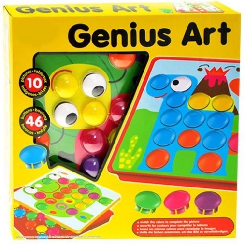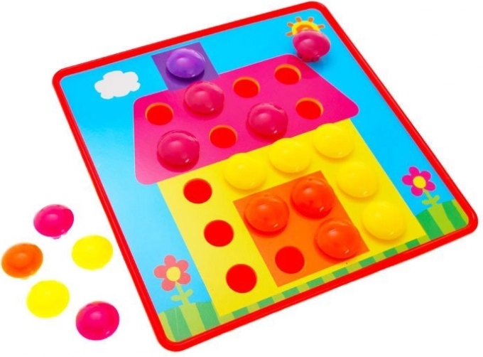 Das Set enthält Bilder mit Löchern, in die die Stifte farbentsprechend eingesetzt werden. Ideal zum Erlernen von Farben und Geduld.