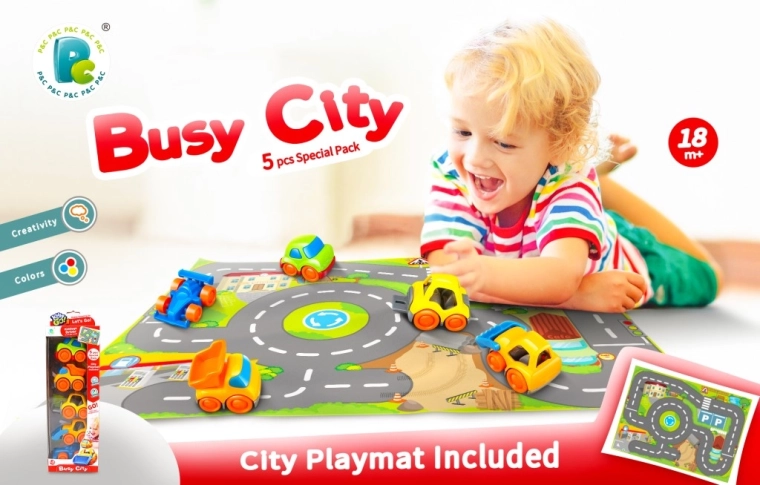 - Set-Inhalt: 5 Autos + Stadt-Spielmatte