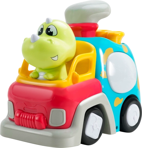 Entdecken Sie das niedliche Auto mit Dinosauriermotiv, das viel interaktiven Spaß für die Kleinsten bietet. Beim Drücken der Tasten auf der Rückseite aktivieren sich Lichteffekte und Geräusche, die die Sinnesentwicklung fördern und die kindliche Neugier wecken. Dank der Freilaufräder lässt sich das Auto leicht steuern und fährt geschmeidig über verschiedene Oberflächen.