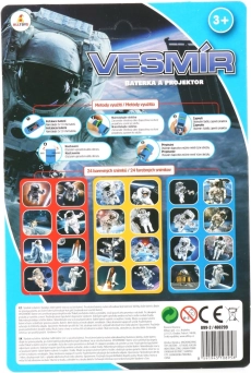 Entdecke das Universum bequem von zu Hause aus. Diese Taschenlampe mit Projektor zeigt bis zu 24 detailreiche Aufnahmen mit Weltraumthemen – Planeten, Sterne, Raketen und weitere kosmische Motive. Dank des Lichteffekts ist die Projektion beeindruckend und macht auch beim abendlichen Einschlafen Spaß.