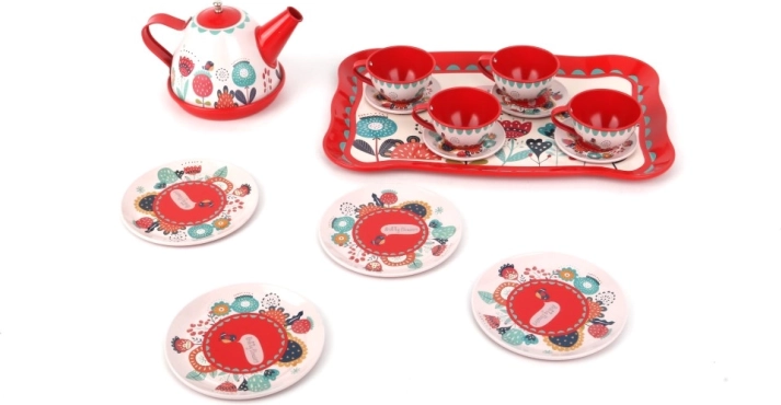 Kinder-Teeset 15-tlg. für zauberhafte Teerunden. Teekanne, Tassen, Untertassen, Teller und stilvolles Tablett. Elegantes und unterhaltsames Servieren.