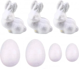 Genießen Sie kreativen Osterspaß mit dem Set zum Malen von Styropor-Dekorationen. Es enthält alles, was Sie zur Herstellung einzigartiger Dekorationen benötigen: drei Hasen, vier Eier, ein Farbset und einen Pinsel.