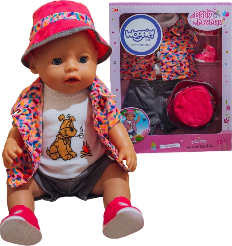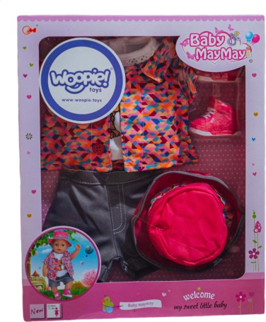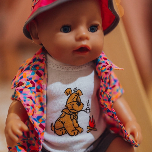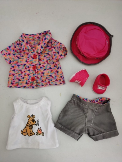 Dieses farbenfrohe Puppenkleidungs-Set ist eine tolle Ergänzung für jede Kinderausstattung. Enthält ein T‑Shirt mit niedlichem Hund, eine bunte Jacke, eine Mütze, Shorts und Schühchen – alles in fröhlichen Farben aufeinander abgestimmt. Dank der präzisen Ausführung wirken die Kleidungsstücke realistisch und lassen sich leicht anziehen.