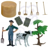 Das Set enthält einen Traktor, Tier- und Bauernfiguren sowie weiteres landwirtschaftliches Zubehör, das eine realistische Bauernhofatmosphäre schafft.