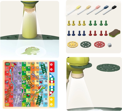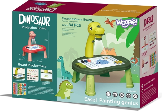 Der Projektor in Dinosaurierform projiziert Bilder direkt auf den Tisch, sodass Kinder sie leicht nachzeichnen können. Es stehen 24 Vorlagen auf 3 Scheiben für grenzenlosen Kreativspaß zur Verfügung.