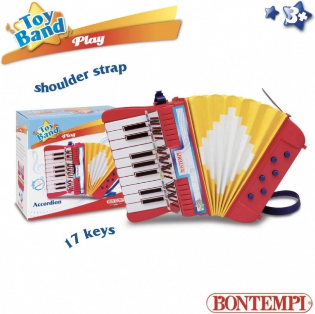 Das BONTEMPI Kinder-Akkordeon ist das ideale erste Musikinstrument für kleine Musikanten. Dank kompakter Bauweise, robuster Verarbeitung und intuitiver Bedienung erlernen Kinder leicht die Grundlagen des Spielens und des Rhythmus. Riemen aus widerstandsfähigem Kunststoff sorgen für einen stabilen Halt und Sicherheit beim Spielen.