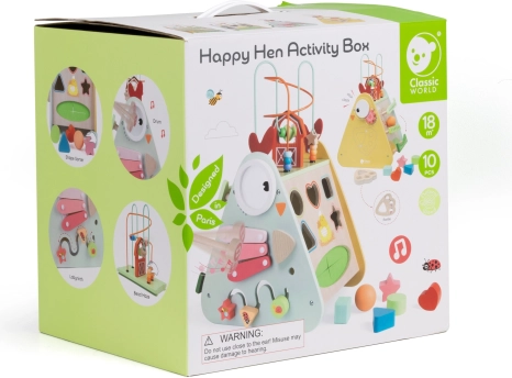 Entdecken Sie den vielseitigen hölzernen Montessori-Würfel 10-in-1 von CLASSIC WORLD, der die beliebtesten Kinderaktivitäten in einem cleveren Spiel- und Lernzentrum vereint. Enthält Xylophon, Labyrinth, Perlenlabyrinth, Zahnräder, Formensortierer und weitere Elemente zur Förderung der Feinmotorik, der Hand-Auge-Koordination und der Kreativität. Aus hochwertigem Holz, mit ungiftigen Farben und geeignet ab 18 Monaten.