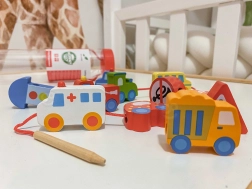 Dieses kreative Set bringt Kindern ab 2 Jahren Freude am Auffädeln und Kombinieren. Dank leuchtender Farben und verschiedener Fahrzeugformen lernen kleine Hände Präzision und Geduld, während Kinder spielerisch Grundlagen der Verkehrserziehung aufnehmen. Natürliches Holz und glatte Kanten sorgen für eine angenehme und sichere Haptik.
