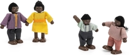 Die Puppen passen perfekt ins Puppenhaus oder eignen sich als eigenständiges Spielzeug. Kompakte Maße liegen gut in Kinderhänden, und die robuste Verarbeitung hält täglichem Spielen stand. Die farbige Kleidung unterstützt die visuelle Wahrnehmung und das Unterscheiden von Farben.