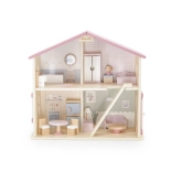 Das Viga PolarB Holz-Puppenhaus bietet Kindern eine wunderschöne Umgebung für kreatives Spiel. Zwei Stockwerke mit Treppe beherbergen Küche, Wohnzimmer, Badezimmer und ein gemütliches Schlafzimmer – jeder Raum ist sorgfältig gestaltet und mit detailreichen Accessoires ausgestattet. Dank der robusten Verarbeitung aus hochwertigem Holz und der zeitlosen Pastellfarben ist das Haus langlebig, sicher und fügt sich perfekt ins Kinderzimmer ein.
