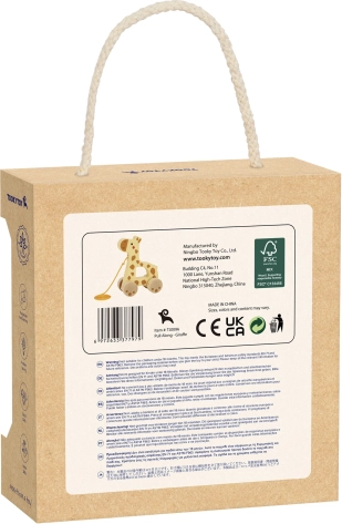 Die Giraffe besteht aus verantwortungsvoll gewonnenem Holz und ist mit unbedenklichen Farben bemalt. Das Spiel mit dem Ziehspielzeug fördert auf natürliche Weise Koordinationsfähigkeiten, Gleichgewicht und Konzentration und motiviert Kinder zum Laufen und zu aktiver Bewegung.