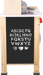 Diese wunderschöne Holzküche bietet eine breite Palette von Funktionen, wie Herd, Ofen, Mikrowelle und eine Wandtafel, auf der Kinder zeichnen können. Die Küche ist aus hochwertigen Materialien gefertigt und für Kinder ab 3 Jahren geeignet.