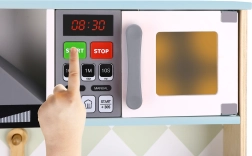 • Akustische und visuelle Effekte - funktionale Knöpfe auf dem Herd und der Mikrowelle.