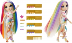 Entdecke die kreative Welt des Stylings mit der Rainbow High Amaya Puppe. Dank ultralanger, leicht kämmbarer Haare und eines Sets mit farbigen Kreiden gestaltest du zarte Pastelltöne ebenso wie auffällige Regenbogensträhnen. Die Farben spülst du einfach aus – und kannst immer wieder neu experimentieren.