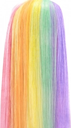 Die Puppe hat außergewöhnlich lange, glatte Haare mit Regenbogensträhnen, die sich leicht kämmen, flechten und zu verschiedenen Styles formen lassen – von Wellen über Zöpfe bis hin zu markanten Farblinien.