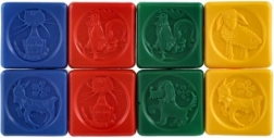Das Set bietet Würfel in vier verschiedenen Farben - blau, rot, grün und gelb. Kinder können nach ihrer eigenen Fantasie spielen und bauen.