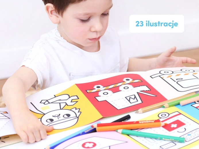 Entdecken Sie die Freude am Zeichnen mit dem preisgekrönten Set Lange Malbücher Fahrzeuge bei der Arbeit! Wirklich lange Malbücher mit bunten Fahrzeugen, inspiriert von den Lieblingsthemen der Kinder. Illustrationen mit starken Konturen sind für Anfänger geeignet.