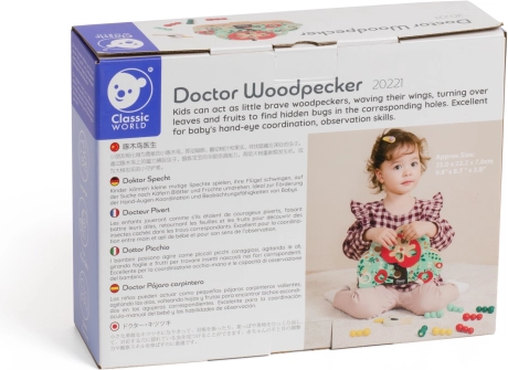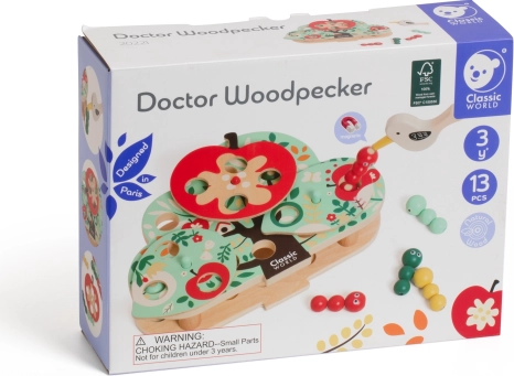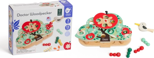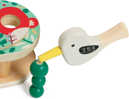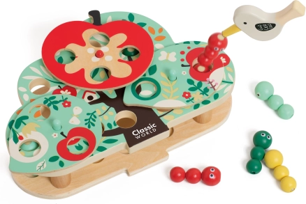 Mit dem „Specht-Vogel“ mit magnetischem Schnabel fangen Kinder bunte Perlen–Würmchen, die in den Öffnungen des Baumes versteckt sind. Das Spiel ist intuitiv, sicher und motiviert zum wiederholten Ausprobieren, wodurch Geduld und Genauigkeit ganz natürlich gefördert werden.
