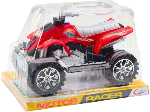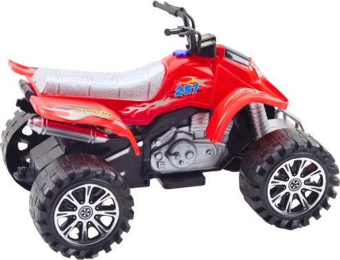 Entdecken Sie grenzenlosen Spielspaß mit dem roten Geländequad für Kinder. Dank des Schwungradantriebs einfach nach hinten ziehen und loslassen – der Quad schießt sofort nach vorn. Das sportliche Design mit vielen Details und die robuste Ausführung machen ihn zum idealen Spielzeug für Garten, Spielplatz und Kinderzimmer.