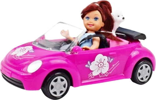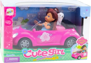 Die niedliche Puppe nimmt in einem stylischen rosafarbenen Cabrio mit offener Bauweise Platz, die das Einsetzen und Herausnehmen der Figur erleichtert. Dank beweglicher Arme und Beine setzen Sie sie mühelos hinter das Lenkrad und brechen mit dem treuen Hündchen auf dem Rücksitz zu einem Ausflug auf.